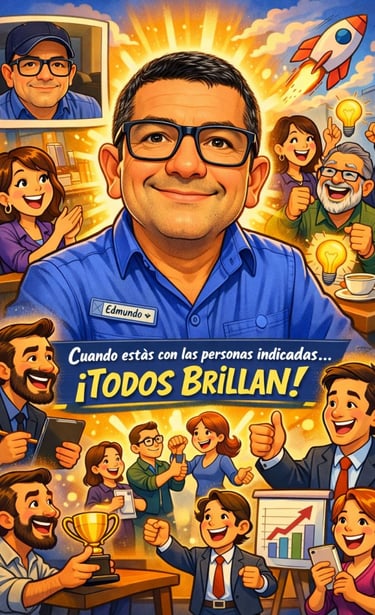 No apareces dominando la escena, sino conectado con los demás, lo cual sugiere un estilo de liderazgo colaborativo y no autoritario.