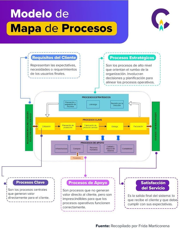 ✅ Procesos de Apoyo: Respaldan a los procesos clave (RRHH, finanzas, TI). Abajo