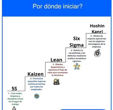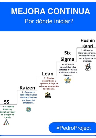 Muchos se lanzan directamente a grandes proyectos sin construir la base, y ahí es donde fallan. La Mejora Continua es una progresión escalonada que exige disciplina antes que complejidad.
